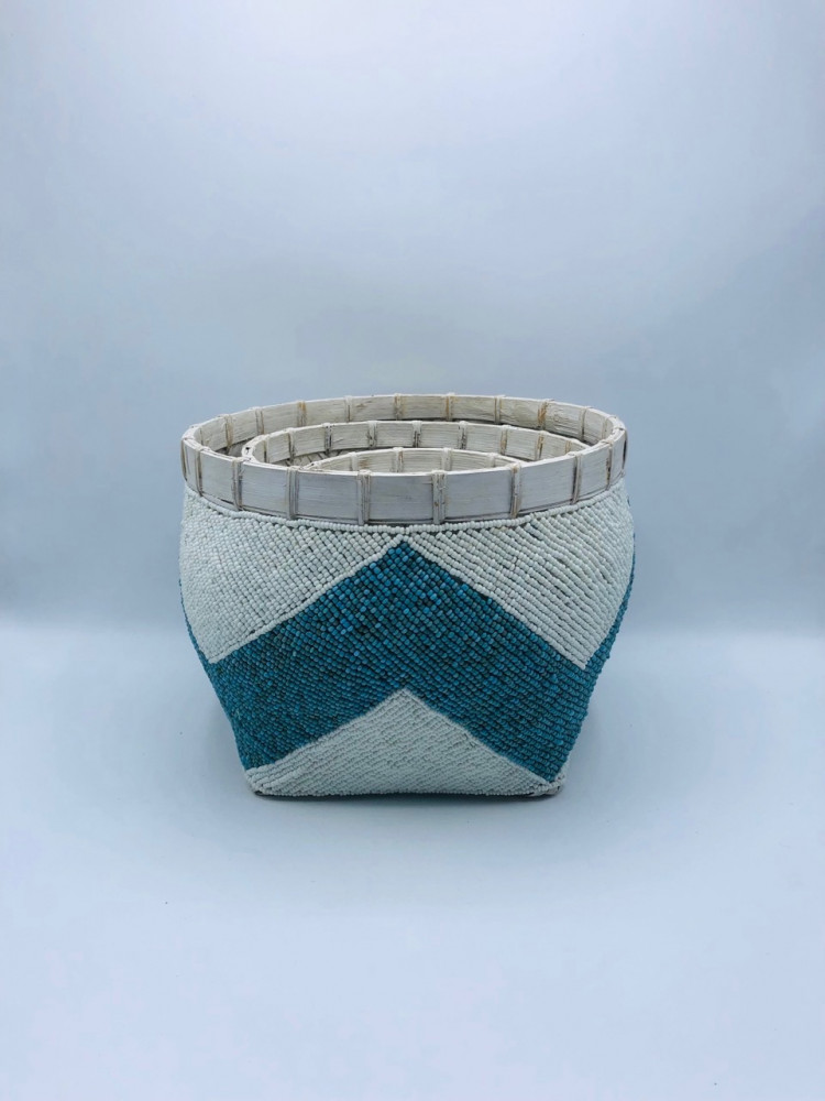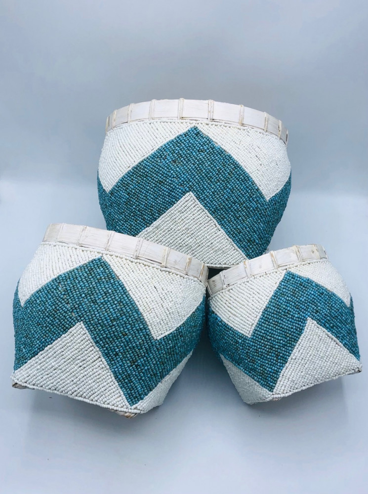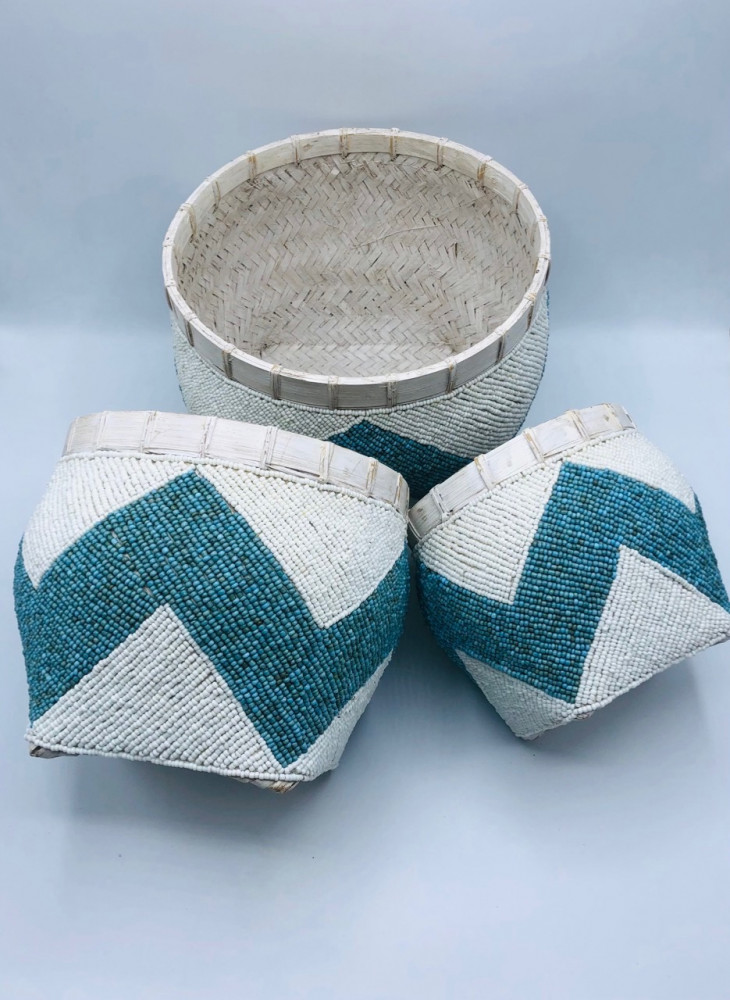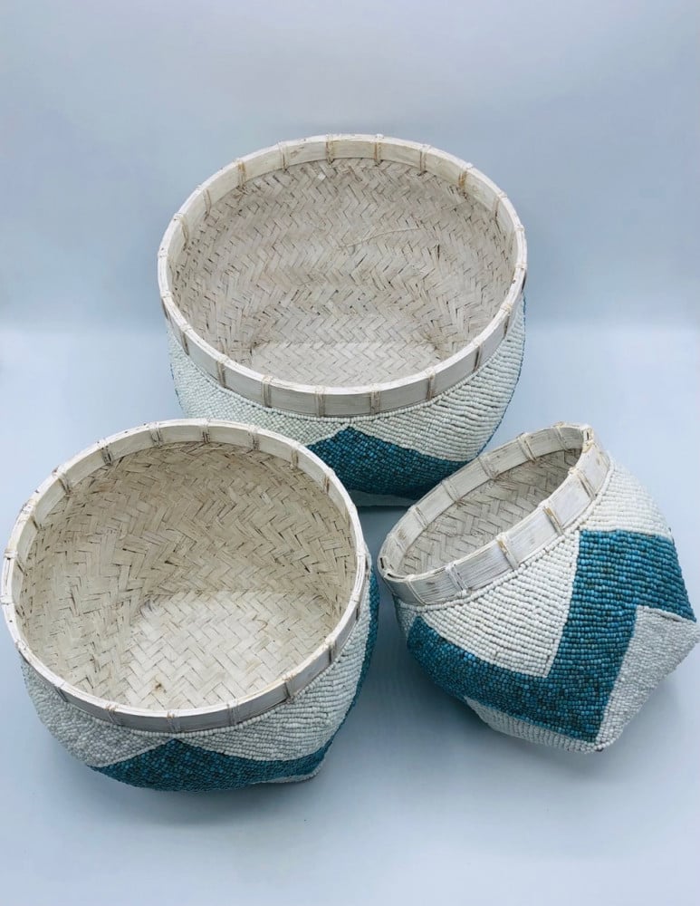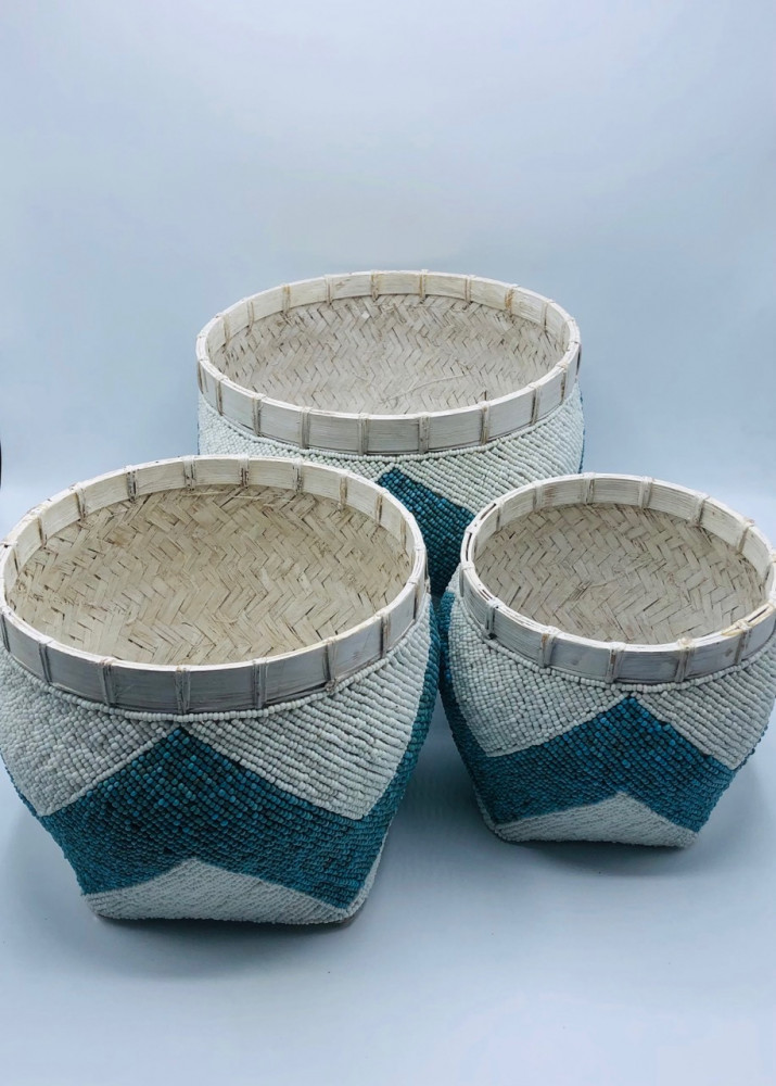 طقم من 3 أحواض زراعية من الخوص مزينة بالخرز