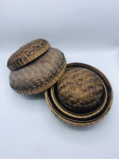 ٣ علب من الخوص مع غطاء (٢٥سم، ٢٠سم، ١٥سم)