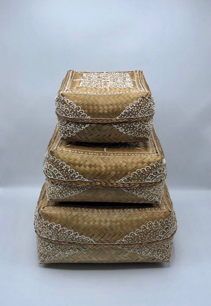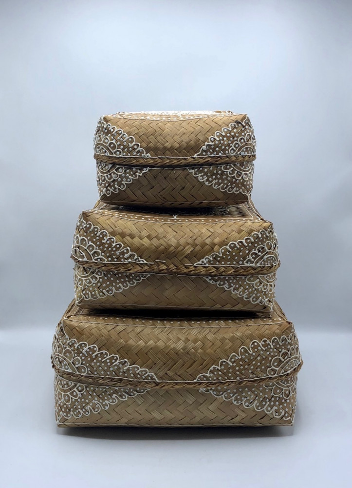 طقم مكون من 3 صناديق مزخرف عليها بالرسم اليدوي (25سم ، 20سم ، 15سم)