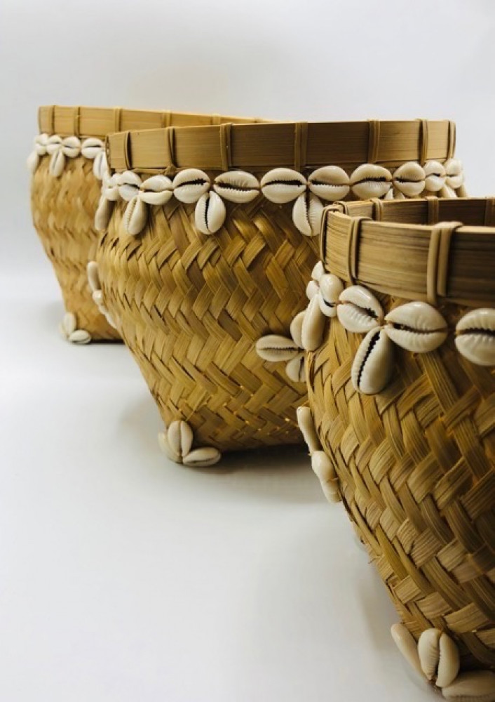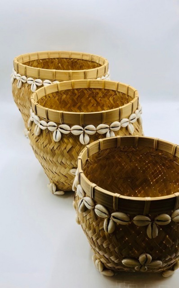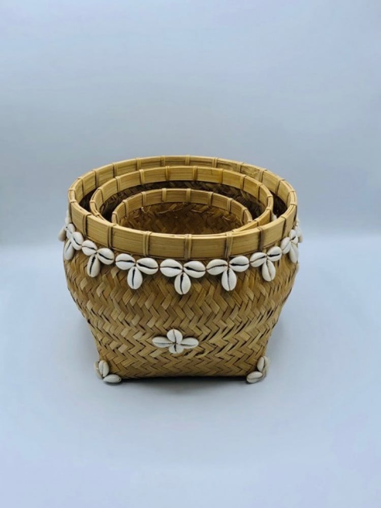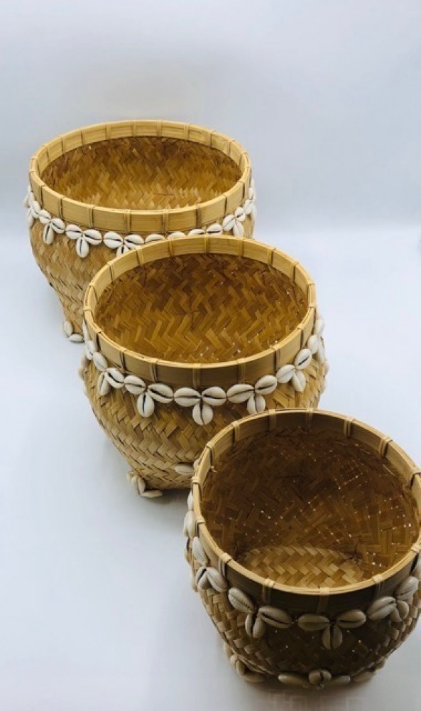 3 أحواض زراعية مزينة بالصدف (25سم، 20سم، 15سم)