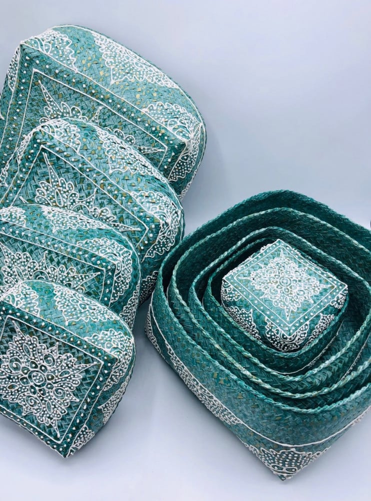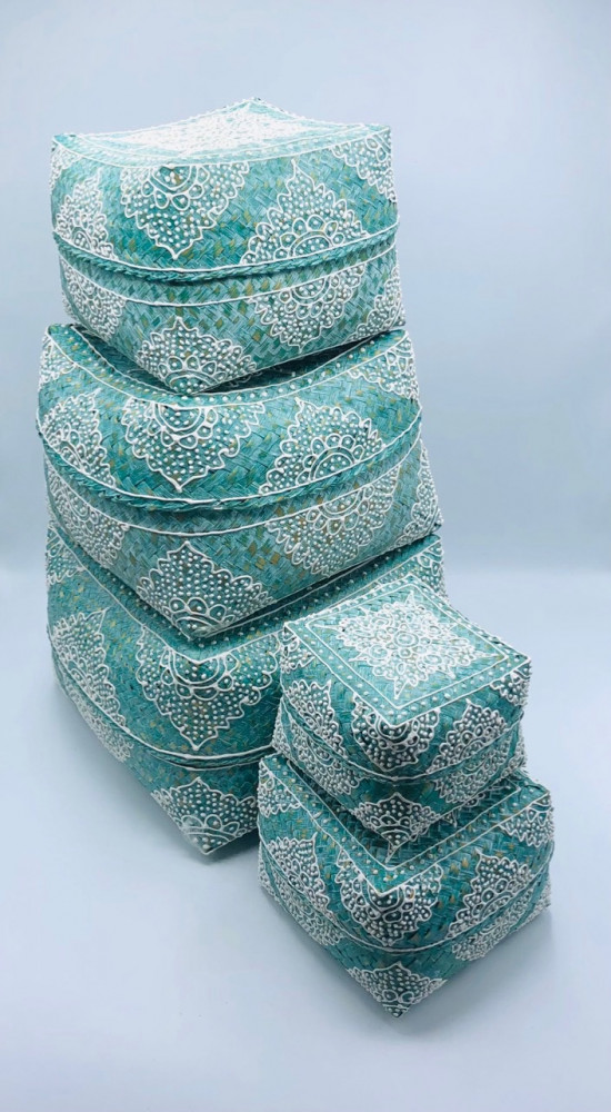 طقم مكون من 5 صناديق بداخل بعضها مع غطاء لكل صندوق مرسومه باليد (25سم، 20سم, 16سم، 13سم، 10سم)