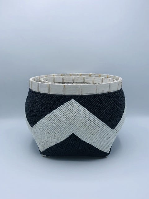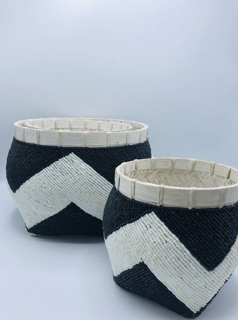 أحواض زراعية من الخوص مزينة بالخرز (لون أبيض وأسود)