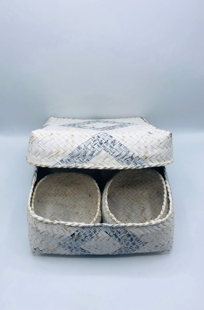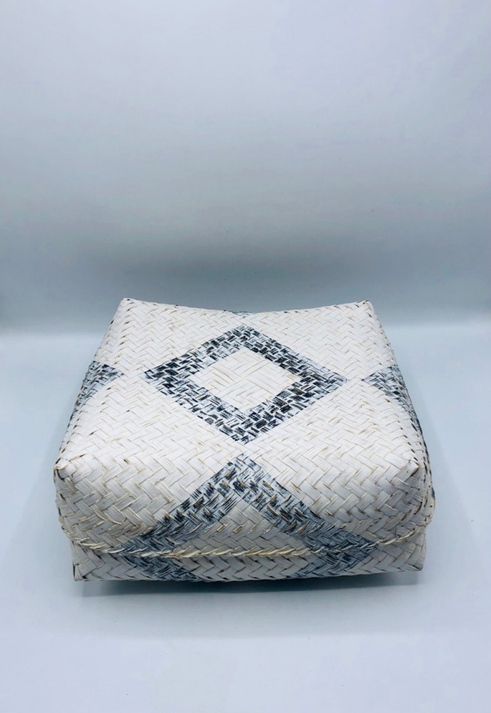 صندوق حجم 25سم لون أبيض مرسوم عليه مكعبات بالرمادي