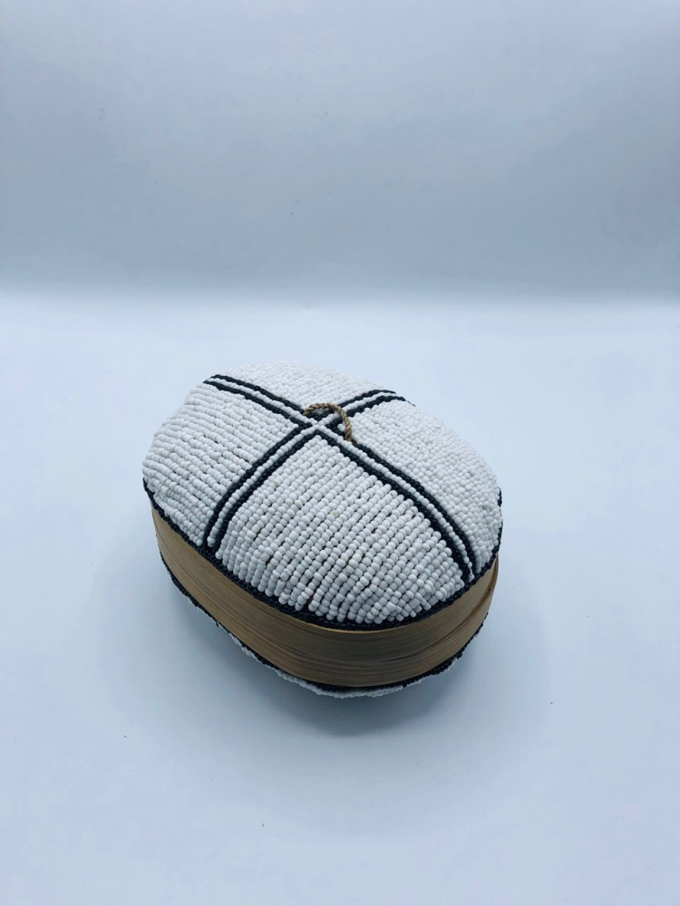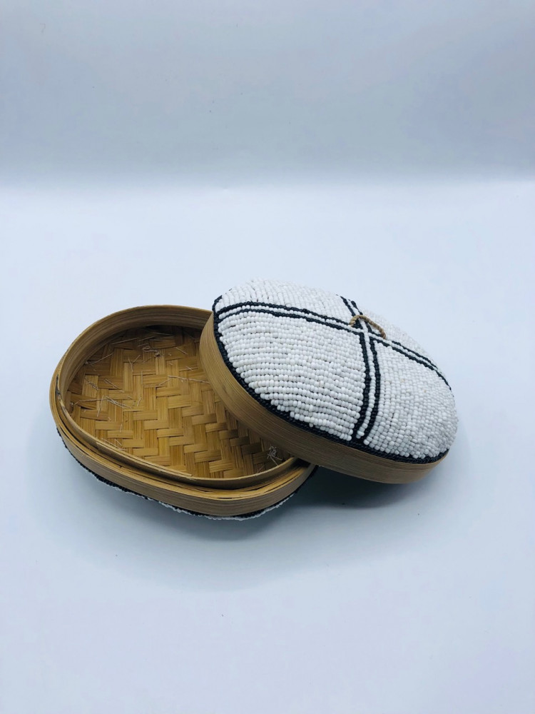 علبة صغيرة من الخوص (8 سم) مزينة بالخرز