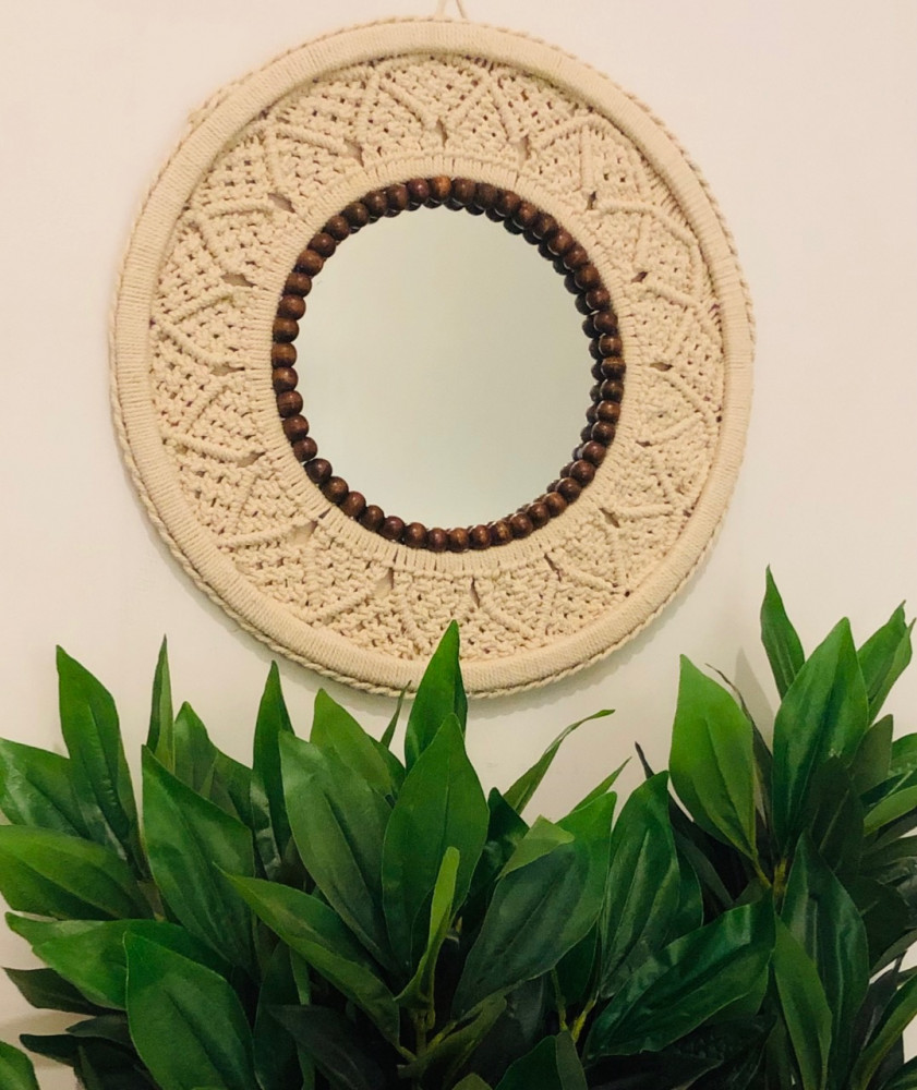 تعليقة جدارية مع مرايا مزينة بزينة باللون البني ( 40سم )