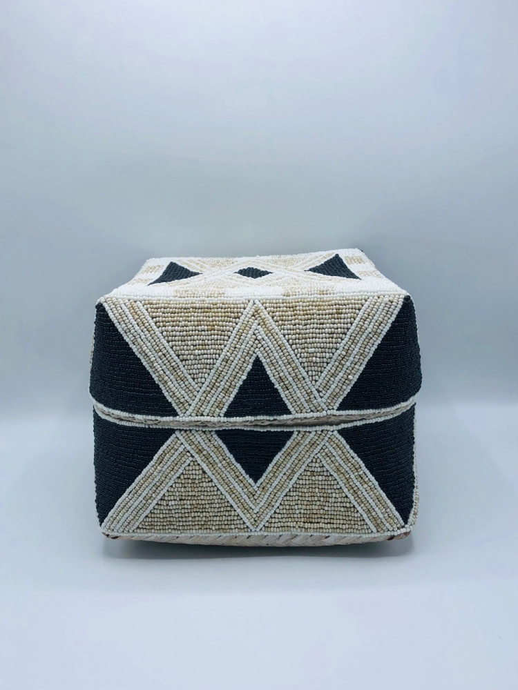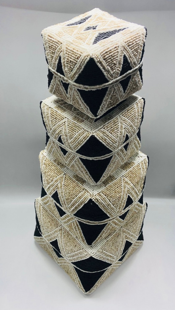 صناديق من الخوص الطبيعي مزينة بالخرز مكونه من 4 صناديق بداخل بعضها بغطاء لكل صندوق (20سم،16سم،13سم،10سم)