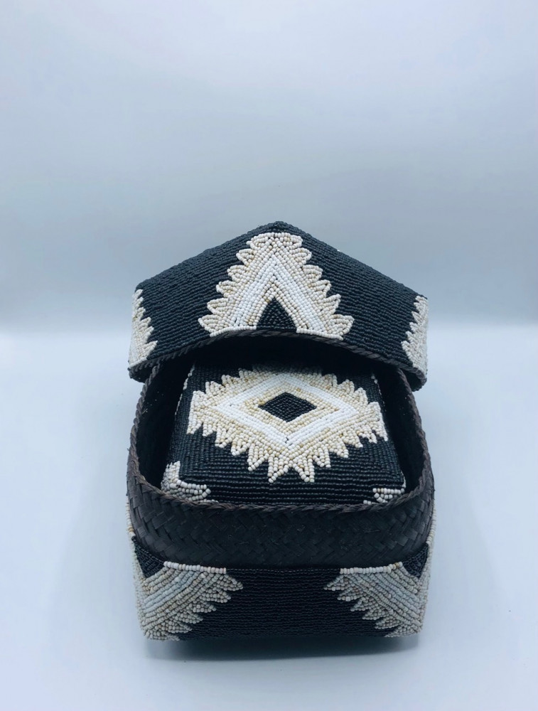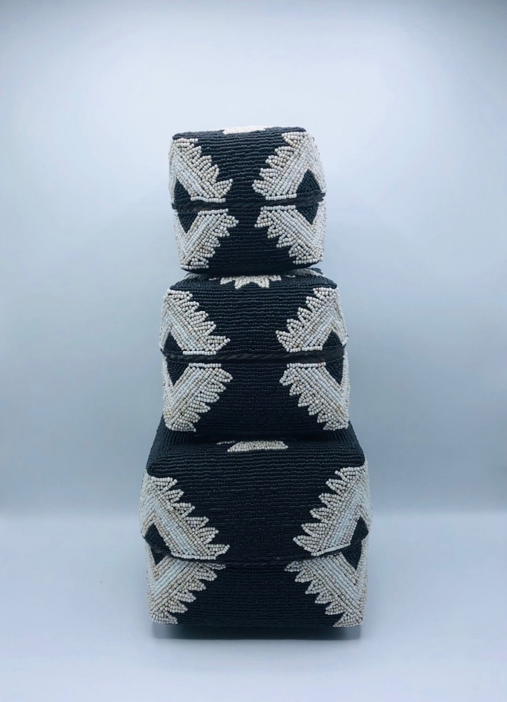 صناديق من الخوص الطبيعي مزينة بالخرز مكونه من 3 صناديق بداخل بعضها بغطاء لكل صندوق (20سم،16سم،13سم)