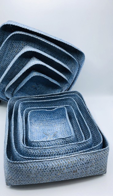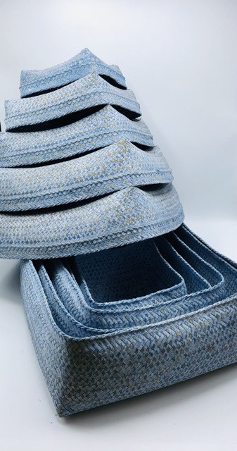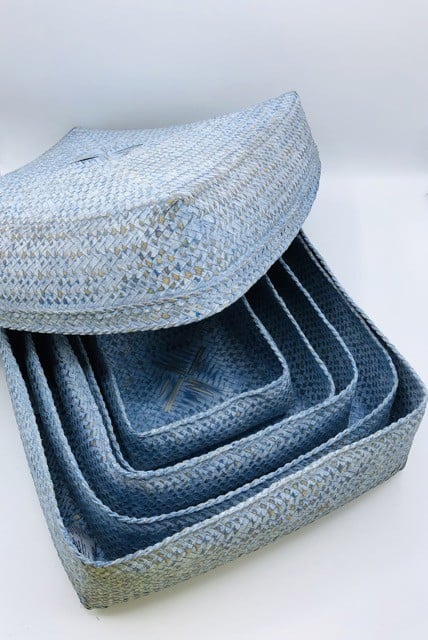 5صناديق من الخوص لون أزرق فاتح (الحجم الكبير 30سم، 25سم، 20سم، 16سم، 13سم)