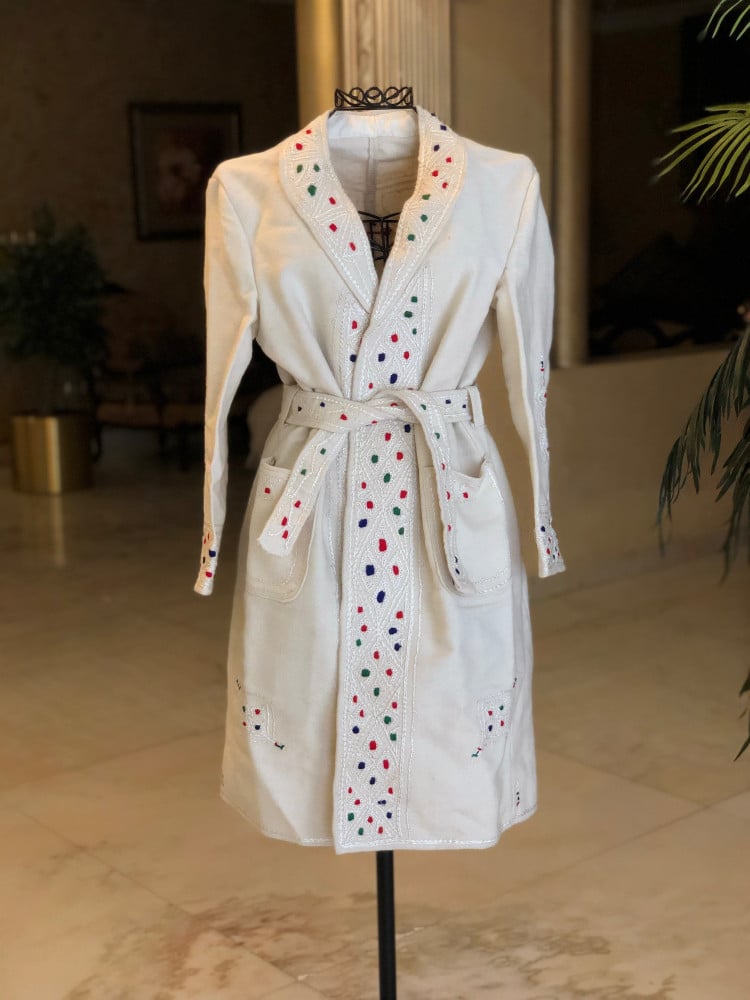 سترة (جاكيت) من الصوف لون سكري مصنوع يدوياً