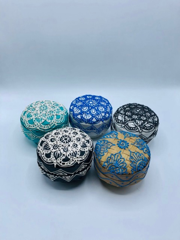 نحن عائلة Hand Made نبدع في صنع صناديق التنسيق والعلب والحقائب اليدوية والصواني والجداريات :) عملنا عبارة عن صناعات باليد من الخوص الطبيعي والخرز والرسوم اليدوية .