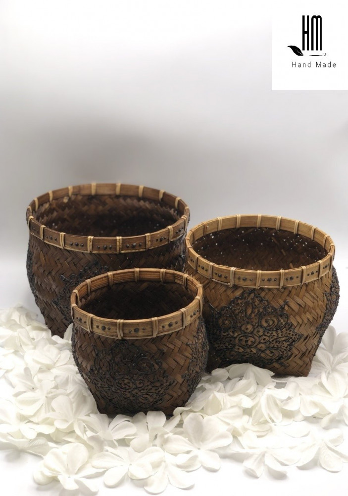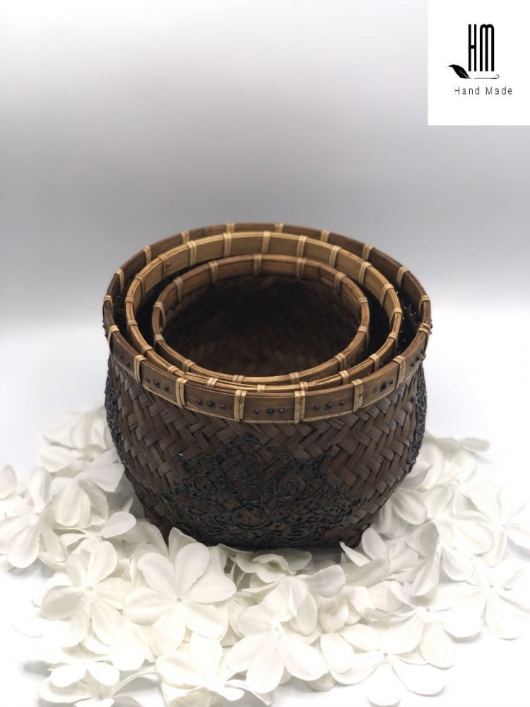 3 أحواض من الخوص الطبيعي بداخل بعضها (25سم , 20سم , 15 سم)