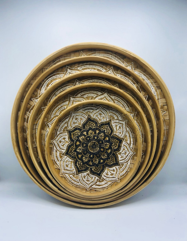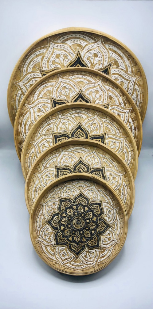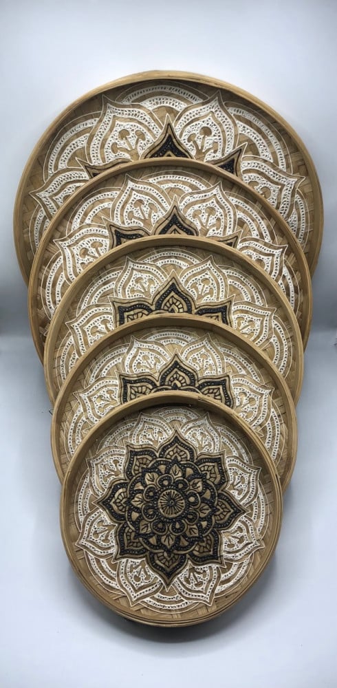 طقم مكون من 5 ألواح من الخوص الطبيعي (45سم،40سم،35سم،30سم،25سم)