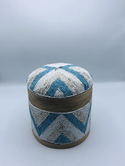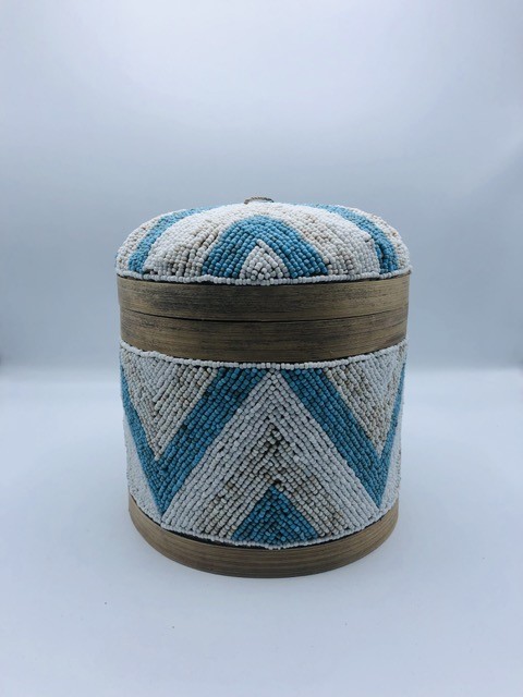 3 علب إسطوانية بداخل بعضها مع غطاء مزينة بالخرز (18سم، 15سم، 11سم)
