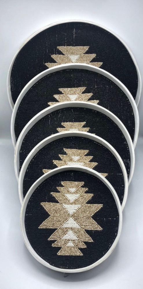 طقم مكون من 5 ألواح من الخوص الطبيعي مزين بالخرز (45سم،40سم،35سم،30سم،25سم)