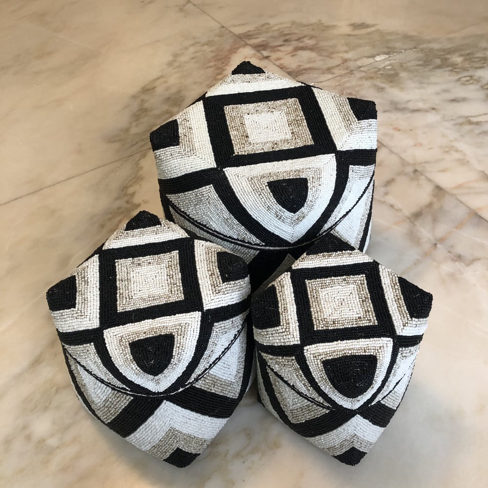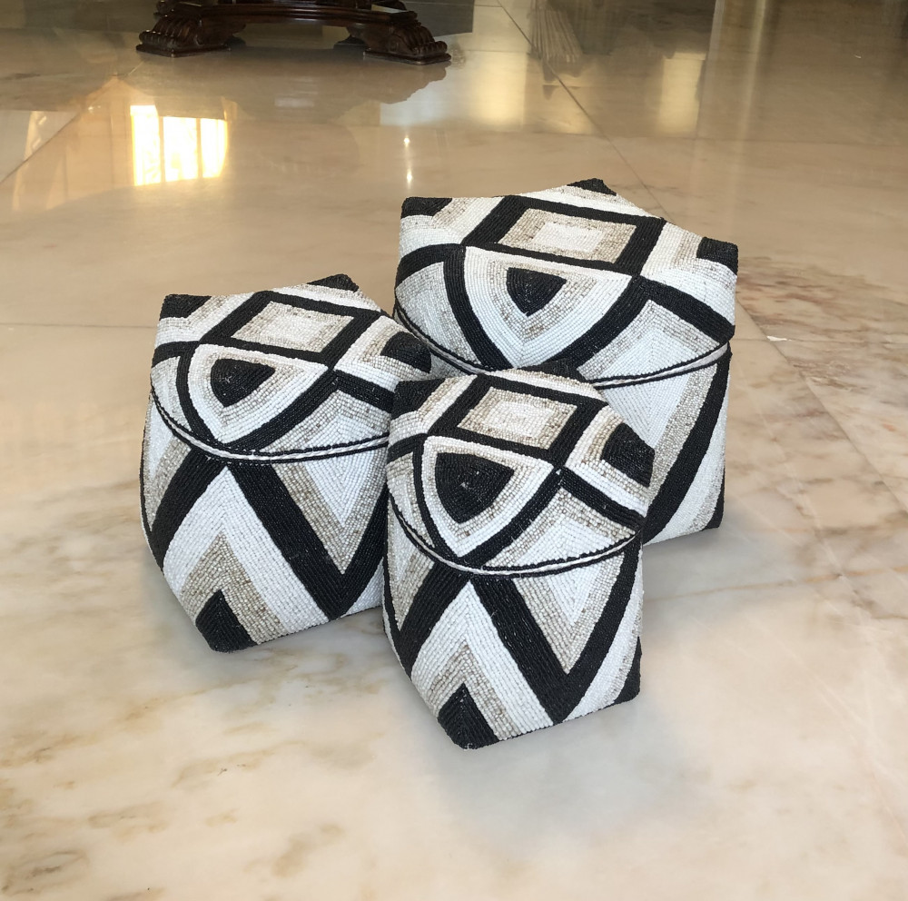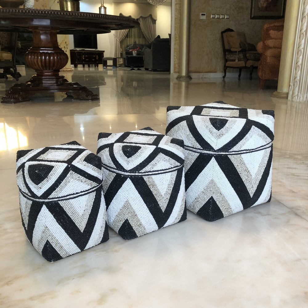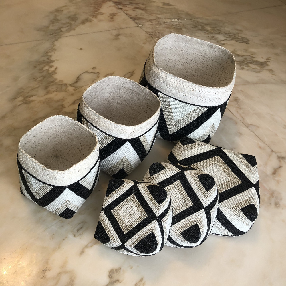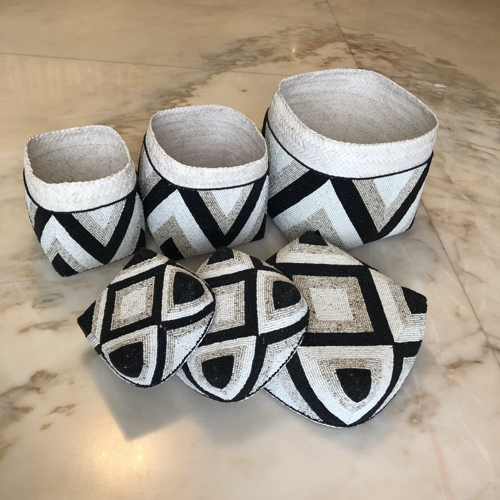 3صناديق من الخوص مزينة بالخرز (30سم، 25سم، 20سم)