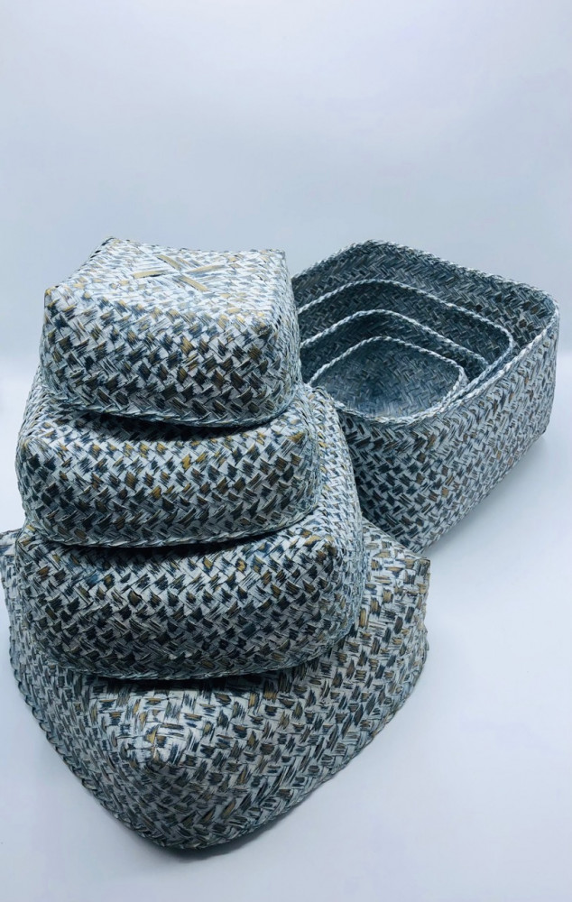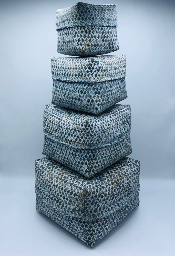 طقم مكون من 4 صناديق بداخل بعضها مع غطاء لكل صندوق لون سماوي (20سم, 16سم، 13سم، 10سم)